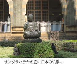 さて、お目当てのチャトラパティ・シヴァージー・マハーラージ・ヴァツ・サングラハラヤ(長い…)、これは要するにインド美術や神仏像がおいてあるミュージアムで、そういうもの以上の何ものでもないかんじ。細密画のコレクションが楽しかった。インド・サラセン調の建築だそうである。綺麗。インド風な庭に日本の仏像が座っていたのは笑った。が、なんせくそ暑くて歩くのもやっとで、サングラハラヤの格子窓から椰子を眺めつつ、こんな調子で歩けるのかとため息ついた午後の一時。