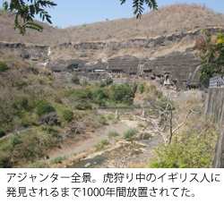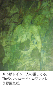 アジャンターもやはりひどく暑い。疲れたので、最奥の瞑想室にすわるに丁度良い石をみつけ、5分ほど休む。細い入り口から入る日光を背に壁をみると、影が不思議とぼんやり。