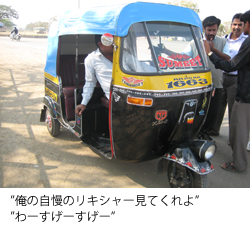 ところがインドボケのせいか?さっそくバスに乗り遅れそうになった。フロントのクールガイ・サンジャイにまで「なんで遅れたんだ(あきれ顔)」と言われ、インド人に呆れられた!インドで乗り過ごすなんて有り得ない!と焦りに焦り、手近にいたおじいちゃんリキシャに泣きついて見るも、席には何かの印刷物が満載されており、あきらかにどこかへ納品の途中である。一度あきらめかけたが、周りの人にうながされ(普通のインド人は基本的に親切なのだ。昔の日本の田舎の人みたいな感じ。おせっかい)、超絶ノロノロじいちゃんリキシャで、タイムリミット10分のところを行く。めちゃくちゃ焦りまくりつつも確実に近づく我ら。出発まであと2分くらいで到着した。うれしさに60ルピーも渡してしまった。10ルピーが相場なのだがご祝儀である。おじいちゃんはめちゃくちゃ喜んでた。