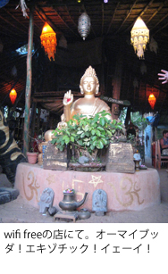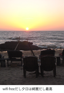 夕方、櫓の集合体みたいな海の家でチョコアイスとチャイをたしなむ。ここはwifi freeだったり、いかにもなブッダ像がディスプレイされてたりと、インドかぶれした小金持ち白人がターゲットのようで値段も高かったが、なんせwifi freeだったのでiPhone片手に2度ばかり使った。