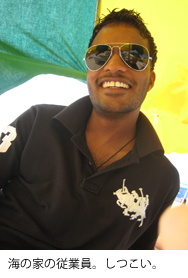 ここで日本人ゆいなさんとスイス人ミハエルのカップルとしばし談笑す。2人でいると必ずゆいなさんに蚊がたかるため、蚊がいるいないで意見が分かれてた2人も、ゆいなさんが蚊やを使い始めるや、全部彼に蚊が行って、結果的に意見が一致したとか、インド人がビーチで行商している変なおもちゃは面白いほど一日で壊れるとか、そんな話。日本人と会話すると言いたいことも思うように表現できるから、ついつい楽しくなってしまう。