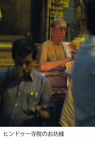 内部の雰囲気は、それこそ、往年のインディ・ジョーンズ先生がずかずかと宝探しでも始めそうな良いムードで、床も壁も天井も柱も、すべてに意匠が懲らしてあって見ていて飽きない。 ひとりのおばあちゃんが私たちを神殿の奥に案内しようとしてくれたけど、そこは異教徒立ち入り禁止だった。でも充分堪能できた。