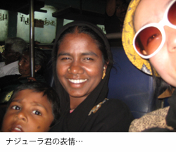 寺院内で迷い街中でも迷う日本人2名 再びひとり旅、一期一会 4時頃バスに乗り込む。隣に座ったマッカトラシアとナジューラという親子と交流した。マッカトラシアは英語が分からなかったので完全に身振り手振りと写真。ナジューラはサングラスを付けた私を怖がっていたけど、バスを降りてからは満面の笑みで手を振ってくれた。もう二度と会えないと思うと切なくて、私もずっと手を振って2人(と迎えのおばさん)を見てた。 親子が下車した停車場で豆サラダを買った。ゆでたての豆、生タマネギ、人参、パクチーにスパイスがふりかけてある。こんなに美味くて10ルピー(20円!!)。