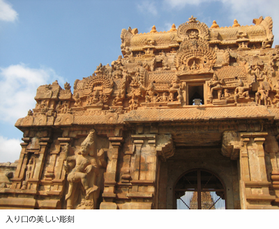 世界遺産ブリハデーシュワラ寺院 タンジョールという街は「9c〜13cにかけてチョーラ朝の首都として栄えた古都」(地球の歩き方・インド'01-'11より引用)だそうだ。その栄華のなごりであるブリハデーシュワラ寺院は、とにかくめちゃくちゃでかいの一言につきる。ご本尊を安置する主塔にいたっては全長63m。スカイツリーの10分の1か。
