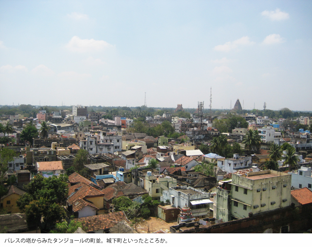なんだったのか不明だが、台本でもあるみたいに息がピッタリだった。 他にも、めがねの男に道を聞いたり、水牛が引く荷車のために道路が渋滞するのを見たり、売店のオヤジさんにタンジョール在4日目の日本人ミュージシャンの噂話を聞かされたり、可愛い女学生集団と笑顔ですれ違ったり、バイクで目的地まで送る申し出をされたり、なんてことないが楽しかった。 ただ歩いているだけなのにタンジョールの人たちは話しかけ、笑いかけてくれた。私の中に笑顔のパワーがたまってゆく。