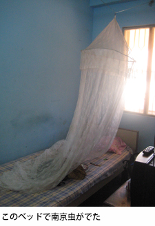 海岸寺院では、コーチンの悪夢のゲストハウスにいたイタリア人爺さんと再会するというひと幕もあった。しかし、なんせおそろしい程の気温で(すでに日中は40度くらいあったろう)、ふと気付けば熱中症になっており、夕方からひどい頭痛と吐き気でダウンした。安ホテルの隣人(白人男)は慣れた物で、日中は1度も外に出ず、テラスでのんびりペーパーバックなど読んでいた。実際、現地人も11〜16時頃まであまり外出せず、部屋ですごしているようだった。野良犬や野良牛だって寝ているのに、歩いているのは何も知らないアホな観光客くらいだ。 夜中、人生初の南京虫にやられる。1匹。隣人のいびきと虫と頭痛で寝られず。
