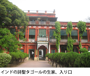 コルカタ3日目に詩人ラビンドラナート・タゴールの生家「タゴールハウス」に行く。3階建で中庭付きの瀟洒な屋敷で、これと言ってめづらしくはなかったが、静かだった。タゴールはインドで大変敬愛されている詩聖である。ベンガル地方ではほとんど神様のような扱いで、うっかり悪口でも言うと危険だとか。インドとバングラディシュの国歌も彼の作詞作曲で、アジア人で初めてノーベル文学賞を受賞している。タゴールは日本とも関係が深い。岡倉天心や横山大観と友達づきあいをしていて、1916年に来日もしている。今より100年前のほうが日本人に知られていたようだ。そういえば林芙美子の「放浪記」にもタゴールに関する記述があった。もったいない。こんな時代だからこそ、タゴールの透明で愛に満ちた言葉は日本人の心にバーンと響くだろうに。