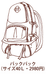 40Lバックパック(アメ横で購入)、 ショルダーバック |
